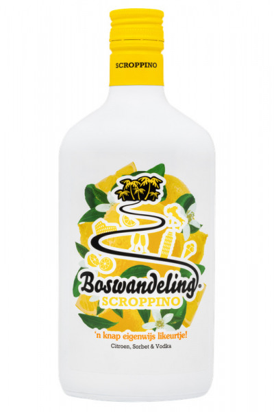 Boswandeling Scroppino Limited Edition is een nieuwe en smaakvolle variant van het populaire Nederlandse likeurmerk Boswandeling. Deze limited edition is geïnspireerd op de Italiaanse klassieker scroppino – Scroppino is een klassiek en verfrissend drankje dat gemaakt wordt van citroen roomijs vodka en Prosecco. samen met de kenmerkende smaak van Boswandeling Original maken van deze drank een ware smaakexplosie.
