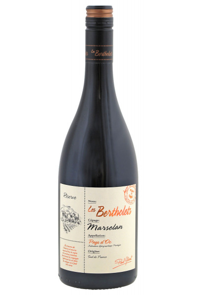 Bertholets Reserve Marselan is een wijn gemaakt van de niet alledaagse Marselan druif. De kleur is dieprood met wat paarse tinten met een verleidelijke geur van rode bosvruchten en zoete kruiden. In de smaak aangevuld met bosbessen, bramen en viooltjes. Een levendige en eerlijke wijn met fijne tannines.